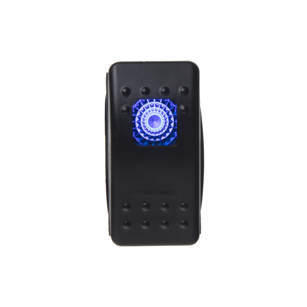 Spínač ROCKER kolískový hranatý s modrým LED podsvietením, pre napájacie napätie 12 V/ 20 A - 24 V/ 10 A, rozmer otvoru 38 x 22 mm.